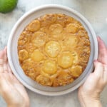 This feijoa upside down cake is delcious. A moist vanilla cake with pops of fresh feijoa in the cake itself, and then the ultimate caramel feijoa topping. It does not get any better.